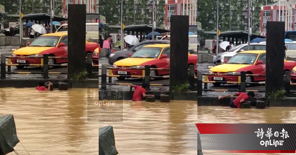 砂拉越中砂 【邱柄农路码头】 跃入江中大喊随后游上岸 男子古怪行径令人费解 2018年11月7日 从左至右为男子试图游回岸上的连环图。 (本报诗巫7日讯)今早7时许,一名相信是印尼籍的男子,不知何故在邱柄农路码头处大喊大叫,之后更出其不意,“扑通”一声跳下河里。Advertisement 接着,懂得游泳的他,又游回岸边,趁大家没注意的情况下独自离开。 该名男子跳进水中再游回岸上的过程,刚好被眼明手快的民众用手机记录了下来。