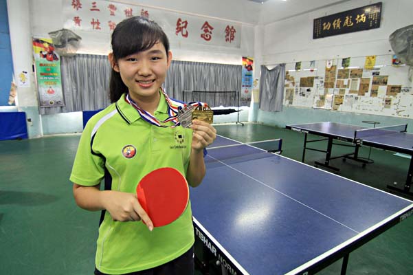 这名来自盐材港政中的小女生,从8岁开始练球,并在古晋辉煌训练中心跟随总教练蔡超年学习。