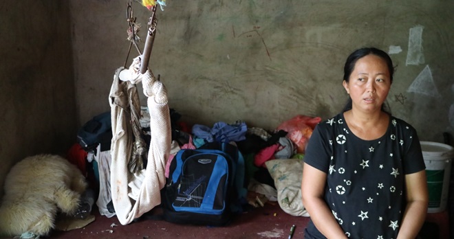 来到这洋灰小窝,入内的大门破旧不堪,客厅里列着残旧的木椅子。一旁,各种杂物堆积着,孩子们的书包、衣服、旧玩具全堆成一团。睡房内,暗沉一片,唯一一张大床尽是榻斜的,四人每天就在这上面睡觉休息,老早已习惯。