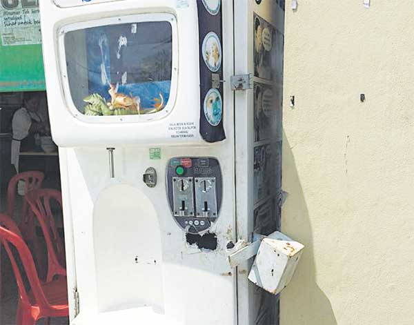 砂拉越民都魯 贼徒盯上饮水机 撬破钱筒盗零钱 2015年4月9日 钱筒被撬损。 (本报民都鲁8日讯)饮水机遭贼撬开钱筒盗走里面零钱, 损失未能估计。Advertisement 此事件相信于今日凌晨,在双溪尼固商业中心发生。 据悉,该台饮水机置放在商业中心走廊,许多上述地点员工皆会到该处投钱盛水。 而该饮水机的员工每一星期或两星期,都会到该处取出钱筒里面的零钱。 锁头被剪断 岂料,今早却被发现钱筒锁头被剪断,钱筒撬开致损坏,里面的零钱已被盗窃。 基于损失未能估计,案件有待调查。
