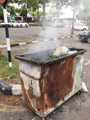 一市民表示,他日前经过该区时发现垃圾桶正在冒烟,桶内垃圾已烧去大半。