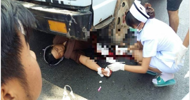 泰国呵叻府兰捆脱县救援队透露,今天当地发生一起6轮卡车撞行人事故,导致一名类似搞慈善募捐的中年华裔女子腿骨碎裂重伤,流失大量鲜血。