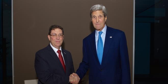 峰会前夕,美国国务卿克里和古巴外长罗德里格斯,於当地时间週四晚在巴拿马举行了闭门会谈,是两国57年来最高层级官员的会晤。美国国务院在推特帐號內,公佈了一张克里与罗德里格斯表情严肃握手的照片。