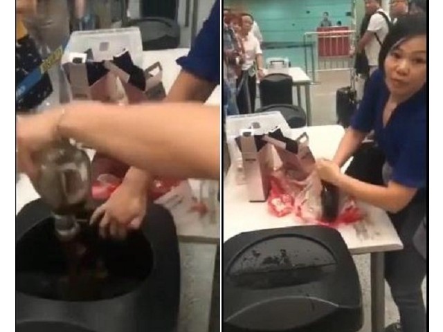 中国网友近日分享一段影片,表示有一名大妈在过登机安检时,被告知在免税店买的洋酒不准过关。