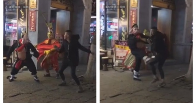 新奇精选 合照价钱谈不拢 「悟空」「八戒」当街暴打凡人 2019年1月29日 中国云南大理古城街头赫见「八戒」偕同大师兄「悟空」,联手殴打凡人的事件!Advertisement 周日(27日),这段八戒跟悟空打人的影片在网路上流传,原来是云南古城的扮装业者跟游客,因为合照价钱谈不拢爆发冲突。 大理市古城保护管理局昨(28日)发出声明,表示古城派出所已第一时间介入调查。 神仙打架由警方收拾残局,网友笑称是「神仙打架」,要大家请佛祖来,不然也要找唐三藏管管自己的徒弟! 还有人替他们评分说「悟空下手挺狠啊」、「二师兄输出明显比大师兄高」。