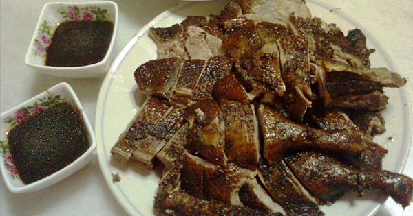 潮州式卤鸭的重点是卤汁,要做出美味卤汁就得靠功夫,把白糖、南姜、八角,丁香、桂皮、小茴及大茴不停翻炒,白糖需炒至红黑,加入上等酱青、鱼露及五香粉后,将鸭放入内卤出汁为止。