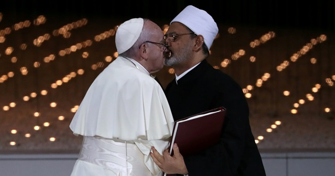 (阿布扎比5日讯)天主教教宗方济各首访阿拉伯半岛,周日晚抵达阿联酋,并于周一参与跨宗教会议,与埃及伊斯兰教逊尼派大伊玛目塔伊布签订“人类友爱”的联合声明,强调宗教领袖有责任抗拒战争。