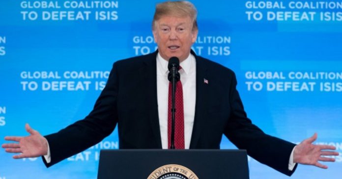 特朗普在华盛顿召开的「全球打击伊斯兰国全球联盟」(The Global Coalition To Defeat ISIS)会议上发表谈话表示,美军、联军伙伴以及敘利亚民主力量(Syrian Democratic Forces, SDF),解放了「伊斯兰国」在敘利亚和伊拉克的几乎所有占据地。