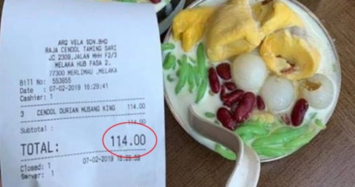 社交媒体疯传网民投诉3碗榴槤煎蕊售价114令吉的照片,惊动马六甲州贸消局介入並展开调查,不过,商家却淡定感谢网民大肆宣传。