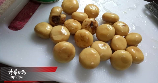 (诗巫19日讯)蘑菇罐头开罐后,内里的蘑菇有腐坏的问题,有几棵出现黑斑点。