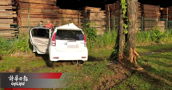 砂拉越南砂 国产车失控撞大树 华裔男子当场毙命 2019年3月2日 (古晋2日讯)国产轿车失控拦腰猛撞路边大树,导致华裔司机当场毙命。Advertisement 此宗死亡车祸是今晨6时许,在德迈拉乌一路段发生,死者证实为今年40岁的华裔男子,来自石角。 据悉,当时死者独自驾驶着轿车,在经过上述路段时失控猛撞路边大树,导致右边车身严重损坏,司机则不幸当场重伤身亡。 随后,死者遗体由警方黑车运入古晋太平间。