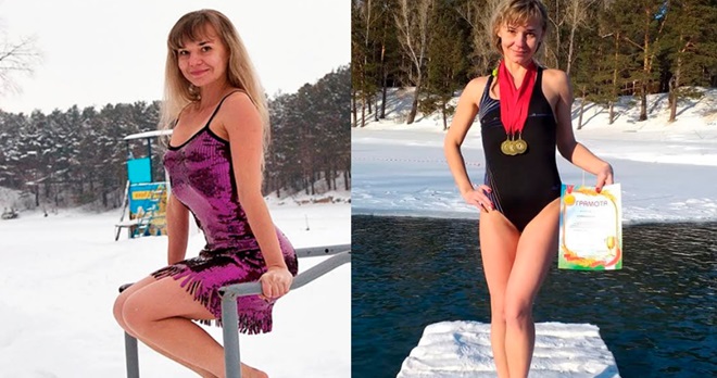 报导指出,库夫新妮可娃的社群网站上,除了该张紫色小洋装照片外,还有她与女学生身穿比基尼、在摄氏零下30度的低温中游泳的画面与影片。