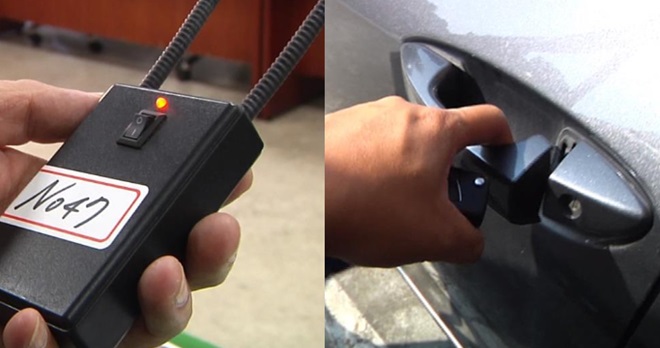 科技犯罪知己知彼,是要告诉你有这种东西,被拿来不肖滥用。提醒民众,下车后拉一下门把,确认门有上锁再离开。不然遇到这种电波干扰器,吃饭回来,爱车可能就已经bye bye了。