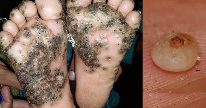 医师指出,因为有穿皮潜蚤(Tunga penetrans)钻入她的脚掌,让她感染沙蚤病。世衞资料显示,雌性穿皮潜蚤,会穿透人体表皮,大多是由脚趾、脚掌与脚后跟位置,它吸血后会迅速生长,引起搔痒、发炎与疼痛,也会演变成细菌感染,让脚部出现脓肿或脓液。