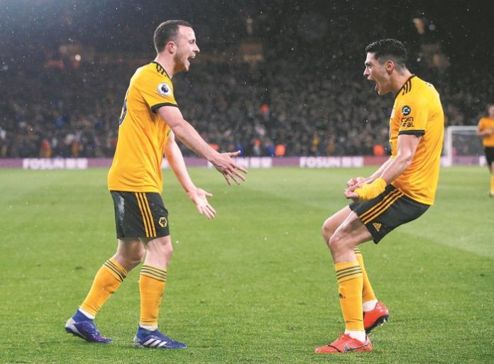 狼队在第25分钟扳平比分,希门尼斯弧顶处送出绝妙直塞球,霍塔反越位成功后攻门命中。