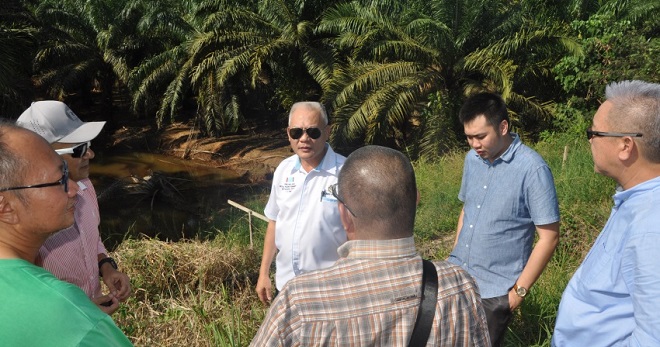 斗湖10日讯|疑因暗沟阻塞造成流水不通,以致发生水患殃至油棕芭,斗湖国会议员拿督刘静芝首席联络官兼社区发展领袖洪定荣今偕同工务局官员及承包商到现场视察,寻找解决方案。