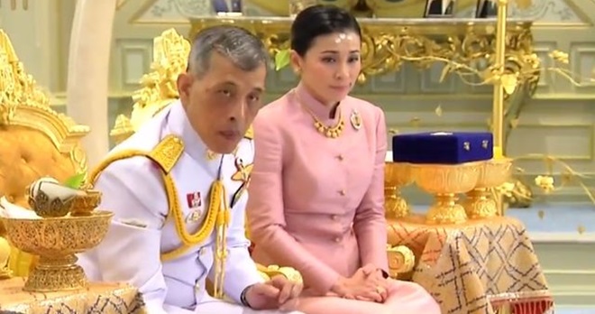日本皇室这两天为了日皇交接喜气洋洋,泰国王室也有盛大庆祝,官方预定在本月4日至6日举办泰王瓦吉拉隆功的加冕庆典,今天王室突然宣布另一项喜讯,66岁的瓦拉吉隆功说他已「合法迎娶」40岁的妻子「素提达将军」,将封她为王后,这是泰王的第四次婚姻,泰国王室并未交代两人何时结婚。