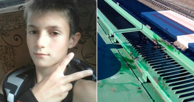 俄罗斯卡拉苏克(Karasuk)一名13岁少年柯洛谢夫(Oleg Khoroshaev),日前爬上一辆列车车顶自拍,想要拍下「让女友惊艳的照片」来示爱,没想到柯洛谢夫一爬上车顶,就在女友面前被27500伏特电缆电击,瞬间自爆,女友眼睁睁看着他变成一团火球。