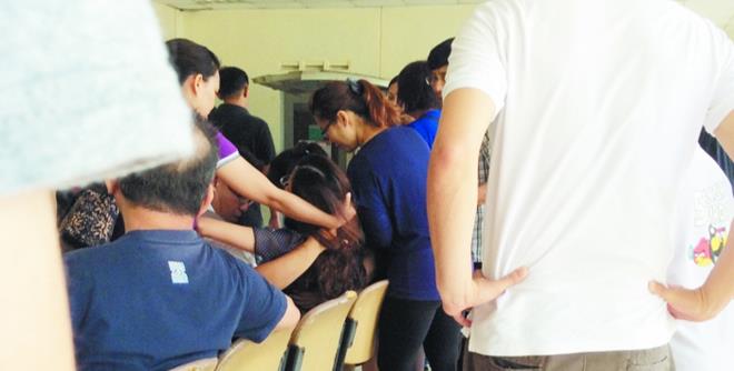 逾20名家属今日到新山班兰医院太平间认领何政道遗体,其怀有4个月身孕的妻子在亲人的搀扶下,到来见丈夫最后一面,数度因伤心过度而昏厥。