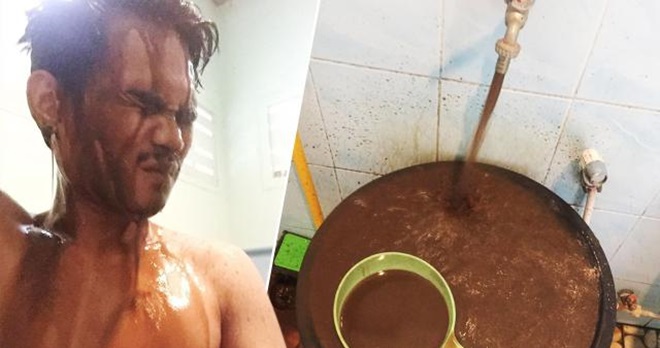 脸书网友Pittinan Pt昨天发布两张照片透露,他洗澡时,水管里却流出深棕色的水,就像阿华田(Ovaltine)饮品一样浓郁。