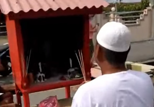 《东方日报》探悉,此事件发生于周三(5日)中午时分,当时一名华裔渔夫头戴礼帽(Kopiah)及腰系纱笼,持香跪拜霹雳角头华丽花园旁的一个拿督公神龛,结果遭人摄下,并上载至社交媒体,引起当地的马来社会不满。