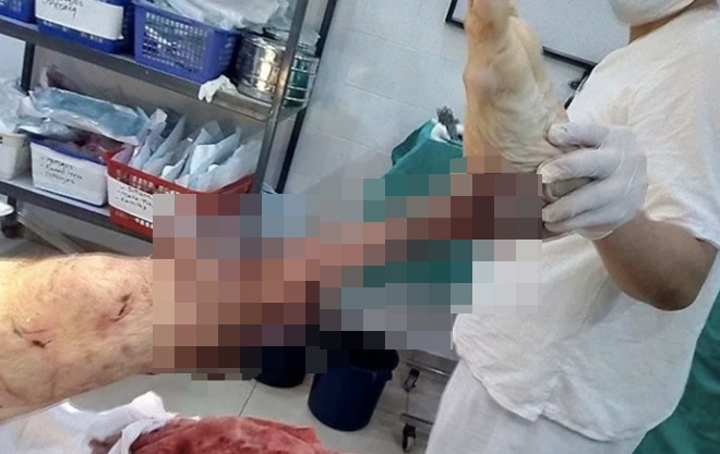 阿根廷一名男子侵入住宅准备偷窃,结果被屋主养的两只彼特犬攻击,左小腿肉被啃光骨头外露。