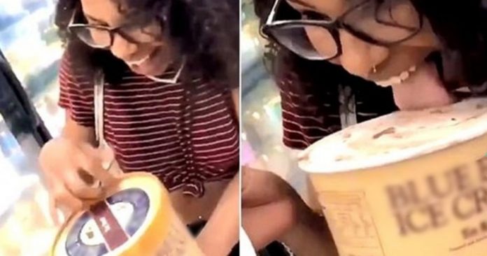 视频被疯传,有人斥这种破坏食物的行径属刑事行为,应拘捕该名女子。又有人指片段摄于德州圣安东尼奥,但消息未经官方证实。还有人表示,为何雪糕盒内层包装不多加一层薄隔层,保护雪糕,同时也避免有人打开吃雪糕,甚至舔雪糕这种行为发生。