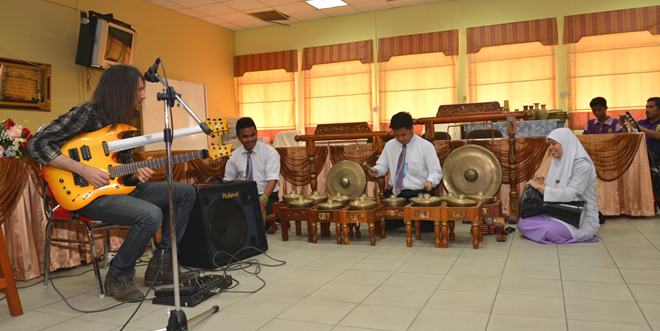 (汶莱斯市21日讯)来自美国的著名摇滚音乐吉他手、作曲家、发片艺人兼制作人罗恩塔尔(Ron ‘Bumblefoot’ Thal)今天继续他在汶莱的交流访问行程。