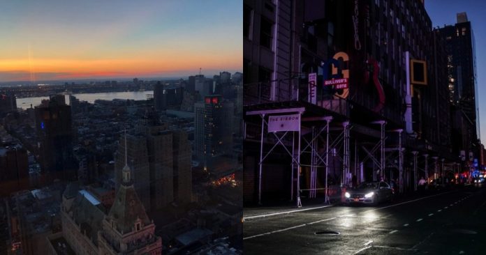 从网民还发出的照片,可以看到原先热闹的时报广场上,招牌的大型广告看板等全都变成一片黑暗。