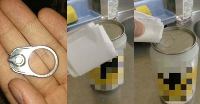 有乡民在PTT上好奇发问,「X你娘,拉环断了怎么办?」这个问题钓出热心网友示范,如何靠一张纸化解尴尬,首先他故意将易开罐上的拉环弄断,接着拿出A4纸对折再对折,折到最小,接着对着开孔位置不停「摩擦摩擦」,只见56秒的功夫,原本平整的平口,就神奇地迸开了。