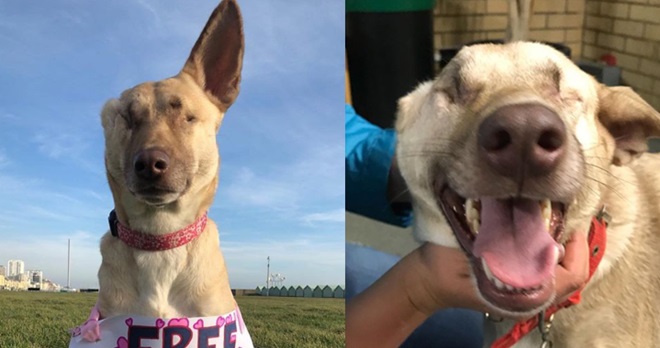 今年5岁的Maggie在2018年被发现,当时它被绑在一个箱子上,身上有17处枪伤痕迹,双眼中弹、一只耳朵被割掉、下巴也脱臼,情况相当紧急,当现任主人Kasey看见这则讯息,立马开启救援Maggie的行动。