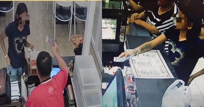 上述印裔女子年约二三十岁,她昨日在峇株巴辖多家餐饮店打包食物,皆将100令吉的假钞置在2令吉真钞下付款,试图瞒天过海,据悉有几间店因此中招。