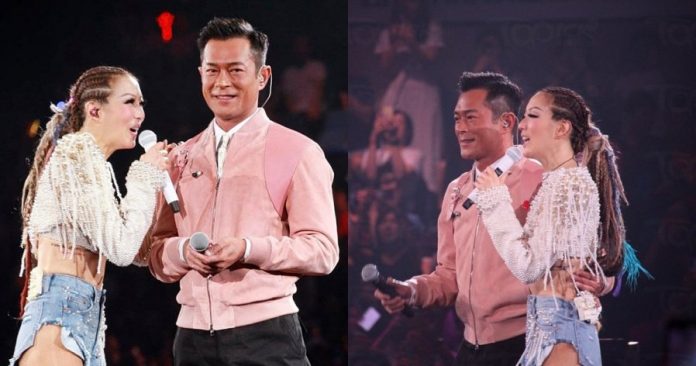 郑秀文(Sammi)最后一场《FOLLOWMi郑秀文世界巡回演唱会》,昨晚唱到《默契》时,便介绍好友古天乐出场,两人手拉手绕场,引起全场欢呼。郑秀文以“叱吒乐坛最受欢迎男歌手”形容古天乐,两人并台上温馨合唱。