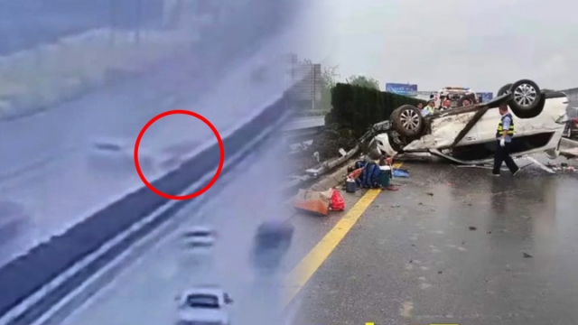 中国河南省安阳市一条高速公路近日发生车祸,从监视器画面所见,一辆白色的奔驰房车,与一部黑色的车辆相撞翻车,不过,交警到场后却发现只有一部车,黑色车辆不见,工作人员称「见鬼了」。专家解释,可能是事发时落雨,出现光学折射,出现类似海市蜃楼,车子撞到了自己的影子。