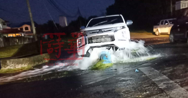 砂拉越民都魯 皮卡失控撞爆路旁水管 附近地区水供受影响 2019年8月11日 (本报民都鲁11日讯)皮卡失控撞上路旁水管,造成水管破裂。Advertisement 此起事件是于今日清晨5时许,在珊珊花园发生。 据悉,一辆皮卡疑因该处阴暗,而失控撞上有关水管,造成水管破裂,水源泄漏影响附近居民。 当局在接到消息后,派员前往现场维修水管,才让附近的居民能恢复水源。