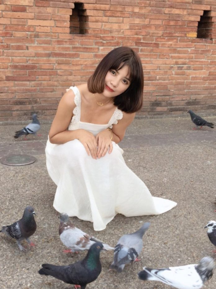 日前网络上贴出一张美女出游照,短发女孩穿著白色洋装,脸蛋甜美、气质又清纯可爱,看到地上有一群鸽子就站在中间蹲了下来,正当她摆出甜甜笑容看向镜头时,鸽群却突然集体振翅高飞,其中一只白鸽还刚好飞在她脸旁边,她被吓到整个人往后倒
