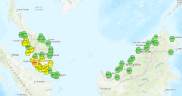 据根据环境局的空气污染管理系统(APIMS)网站,截至今日上午11时,在全国68个空气测量站点中,共有25个地区测量站的空气污染指数破百点,即达到不健康水平,其中1个地区测量站达到非常不健康水平。