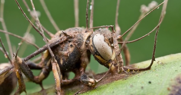 根据《法新社》报导,「偏侧蛇虫草菌」(Ophiocordyceps unilateralis)即俗称的「僵尸真菌」就是一个寄生操控的例子,当它感染蚂蚁后,可以控制蚂蚁的肌肉、违背蚂蚁的意志,让蚂蚁离开巢穴或觅食路径,到一个温度与湿度都适合真菌生长的位置,寻到一片叶子后,咬住叶脉直到死亡。