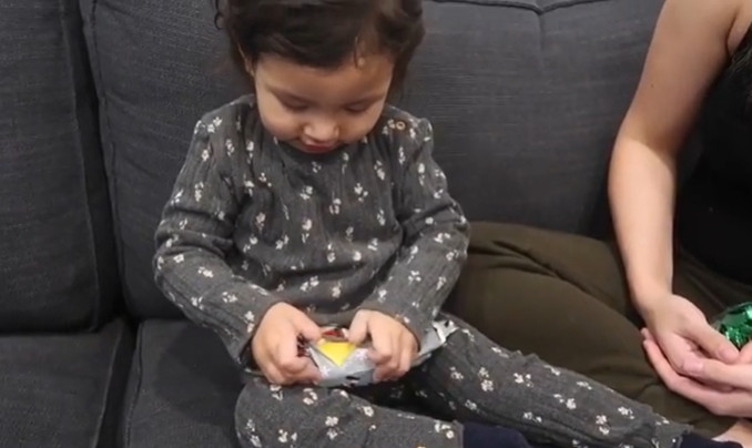 美国洛杉矶一对夫妻在推特和Instagram上很活跃,他们常会和2岁女儿爱瑞雅(Aria)一起拍抖音,由于圣诞节近了,老公莫伊卡(Justice Mojica)决定送给女儿一根香蕉当作礼物,看女儿会露出什么样的傻眼反应,没想到结局出乎他的预料,可爱影片也引起网友疯传。