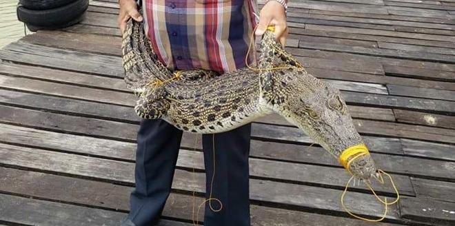 砂拉越北砂 渔夫放生 小鳄鱼卡渔网 2015年5月5日 当地居民见状,将小鳄鱼抱起拍照留念。 (本报美里4日讯)渔夫前往河边查看鱼网时,惊见有一条小鳄鱼卡住在网处,然后就将它打捞上岸,最终他选择将鳄鱼放生回河内。Advertisement 这起事件是今早8时于实务的一带的河边发生。 据知,是名渔夫先前就有设鱼网在河边,主要就是要捕抓鱼儿,今早他前往查看鱼网时,才惊见有一条小鳄鱼卡住在鱼网处。 渔夫将小鳄鱼打捞上岸,确实它属于一条咸水鳄鱼,长约2公尺、重30公斤,过后将它放生河内。