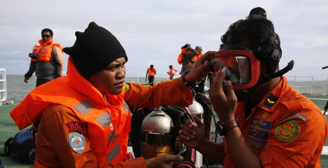 (庞卡兰布翁2日讯)87名印尼海军蛙人准备就绪,一旦搜寻队伍锁定亚航QZ8501的机身地点,就会下水展开海底搜寻工作。