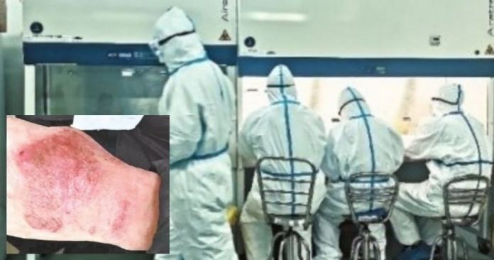 而工作时间一长,双手流的汗全都闷在不透气的橡胶手套中,导致实验室内每个人皮肤都发炎红肿、长红斑,而陈军因为体质,红斑又大又严重,但他擦药包扎后,便回到实验室、坚守工作岗位。