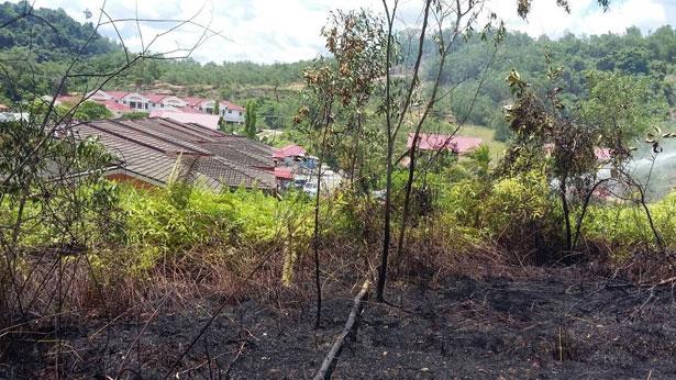砂拉越北砂 靠近住宅区 1英亩林地烧成平地 2015年5月8日 野火肆虐范围靠近住宅区。 (本报林梦7日讯)天气炎热,导致靠近民福花园住宅区一带的森林于今早发生野火,森林范围约1英亩被烧成平地。Advertisement 林梦消防局于今日早上11时37分接获投报,并派员前往灭火,野火范围十分靠近住宅区,所幸消防员及时前往现场将火势扑灭,否则后果不堪设想。