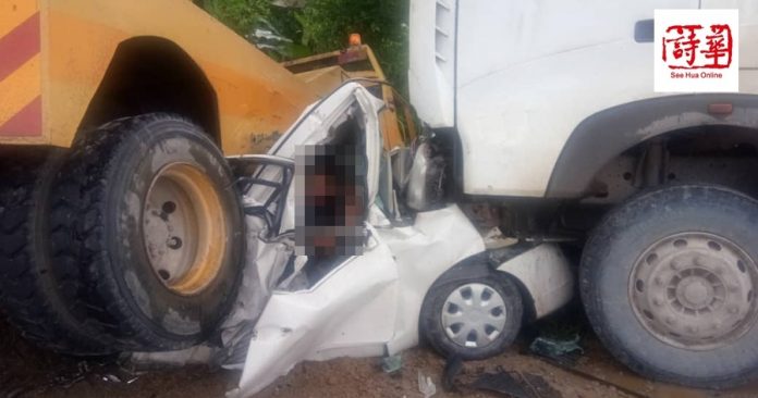 (古晋3日讯)斯里阿曼28公哩路段今午发生载有6人宝腾轿车遭罗里及拖车夹撞﹐酿成3死3伤惨祸,3名死者中有2名孩童。