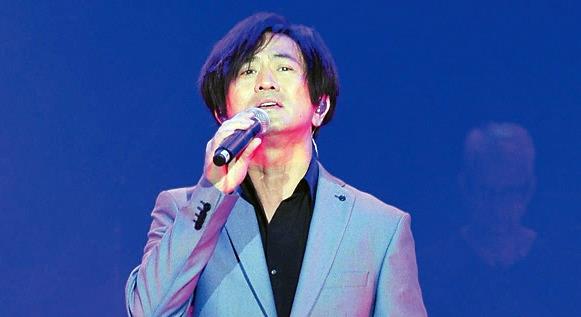 (云顶10日讯)张洪量来马演出,一首《我的爱情》让他一度哽咽唱不下去,隨即走到台下深情凝望「洋老婆」放闪开唱,还拉著老婆的手不放,痴缠表现尽显浪子收心、婚后的甜蜜与浪漫。