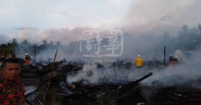 (斗湖23日讯)卡拉巴干甘榜BERTITIAN PORIS福裕板厂6座宿舍的120间房,昨天下午被大火烧成灰烬!