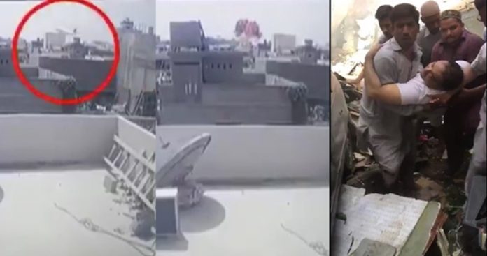 CCTV footage of the tragic plane crash today in Karachi, Pakistan. PIA PK-8303 crashed just before landing in a residential area near Karachi airport. pic.twitter.com/XKGY3BDobX