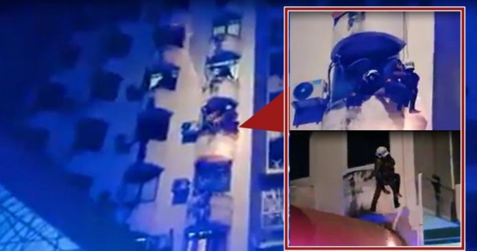 他说,消拯员在接获警方投报后赶到现场,并通过绳索的牵引从5楼爬到4楼有关单位,并及时把嫌犯“抓著”。