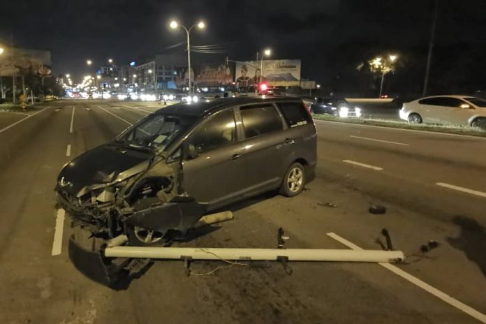 这起事故在昨晚8:25分于亚庇海旁大道,丝绸港湾交通灯处发生,当时,该休旅车是从亚庇往丹容亚路方向行驶。