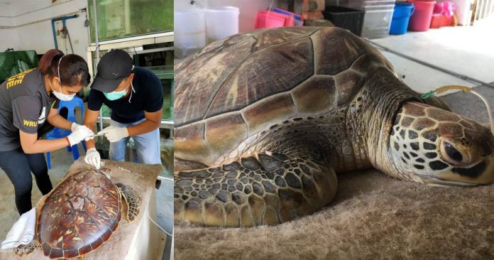 (亚庇11日讯)沙巴大学水族馆一只绿海龟,日前发生“龟体抱恙”的情况,随后获得野生物局属下的野生物救援队(WRU)协助治疗。